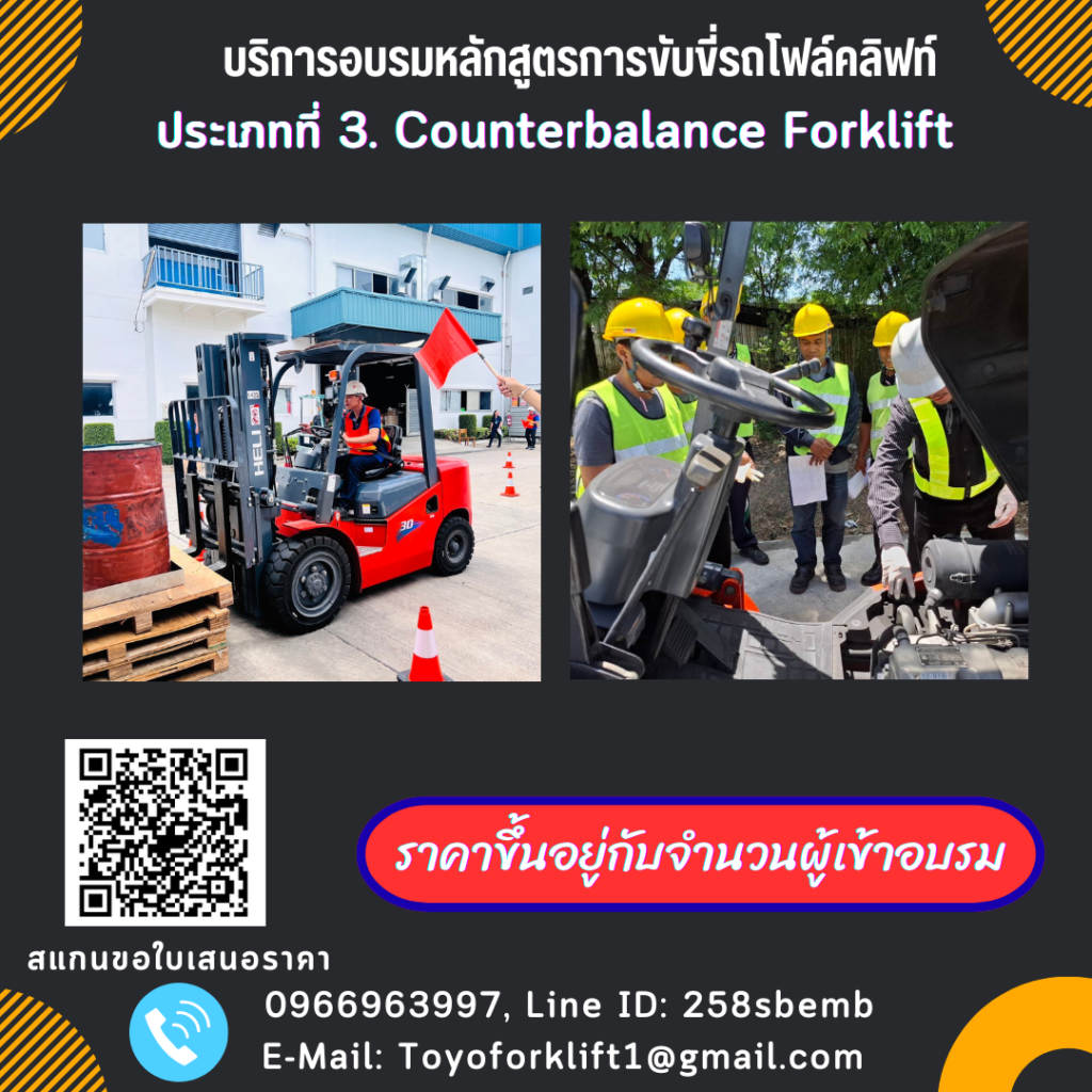 คอร์สอบรมแนะนำ สอบถามหรือลงทะเบียน สแกน QR Code สมัครเข้าอบรม รับอบรมรถยก Warehouse Forklift วันนี้ราคาพิเศษ บริการทั่วประเทศ สมัครเข้าอบรม สอบถามหรือลงทะเบียน สแกน QR Code สมัครเข้าอบรม รับอบรมรถยก Walkie Stacker วันนี้ราคาพิเศษ บริการทั่วประเทศ สมัครเข้าอบรม รับอบรมรถยก Telehandler วันนี้ราคาพิเศษ บริการทั่วประเทศ สมัครเข้าอบรม รับอบรมรถยก Side Loader วันนี้ราคาพิเศษ บริการทั่วประเทศ สมัครเข้าอบรม รับอบรมรถยก Industrial Forklift วันนี้ราคาพิเศษ บริการทั่วประเทศ สมัครเข้าอบรม รับอบรมรถยก Order Picker วันนี้ราคาพิเศษ บริการทั่วประเทศ สมัครเข้าอบรม เกี่ยวกับเรา บริษัท โตโยโฟล์คลิฟท์ จำกัด เป็นบริษัทที่ให้บริการเกี่ยวกับจัดฝึกอบรมรถยกโฟล์คลิฟท์ทั้งในรูปแบบ IN HOUSE และ PUBLIC มีการสอนการขับขี่ตั้งแต่เริ่มต้นจนสอบผ่านมาตรฐานและมอบใบเชอร์เพื่อใช้ในการทำงานตามกฏหมายกำหนด ติดต่อเรา 0966963997 ชื่อ นามสกุล อีเมล์ เบอร์โทร ข้อความ